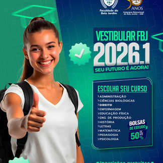 A Faculdade do Belo Jardim (FBJ), instituição que há 50 anos é referência no ensino superior da região, anuncia a abertura das inscrições para o Vestibular 2026.1, que acontecerão de 29 de setembro a 31 de dezembro de 2025. As inscrições são gratuitas e devem ser realizadas exclusivamente pelo site aeb.edu.br.